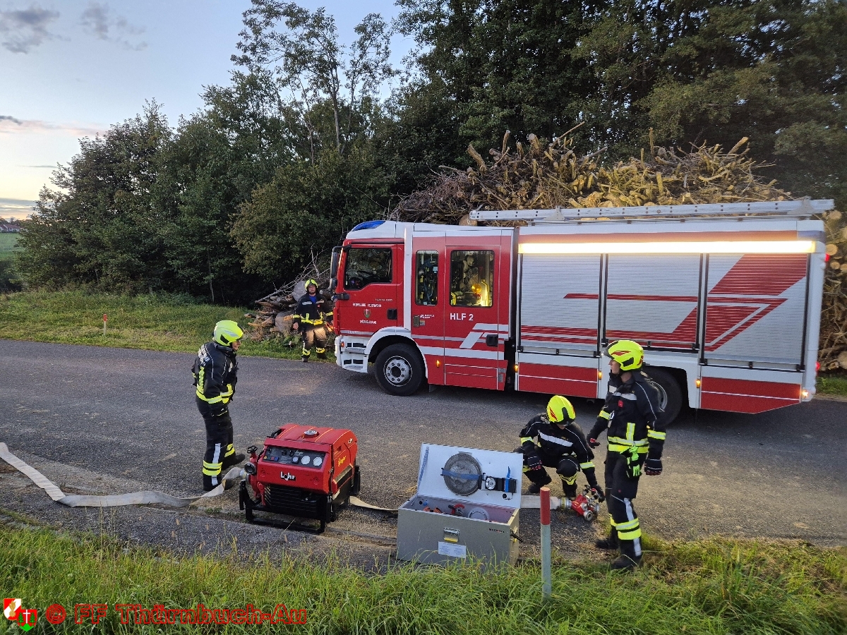 Am Abend des 15. September 2025 fand in Kroisbach eine Inspektionsübung gemeinsam mit der FF Strengberg, mit dem Schwerpunkt Wasserversorgung, statt. Ausgangspunkt war der Musterhartner Bach, von wo aus eine rund 950 m lange Förderleitung bis zur Firma Öhlinger aufgebaut wurde. Diese wurde mit Hilfe unseres Schlauchhängers aufgebaut. Dabei musste ein Höhenunterschied von ca. 65 m überwunden werden. Um die Wasserversorgung sicherzustellen, kamen zwei Tragkraftspritzen (TS) zum Einsatz. Nach etwa eineinhalb Stunden Aufbau- und Übungszeit konnte die Übung gegen 20:30 Uhr erfolgreich abgeschlossen werden. Anschließend erfolgte das gemeinsame Zusammenräumen, eine kurze Übungsnachbesprechung sowie eine gemütliche Jause. Ein besonderer Dank gilt der Firma Öhlinger für die Bereitstellung des Übungsobjekts.u.a. eingesetzte Ausrüstung