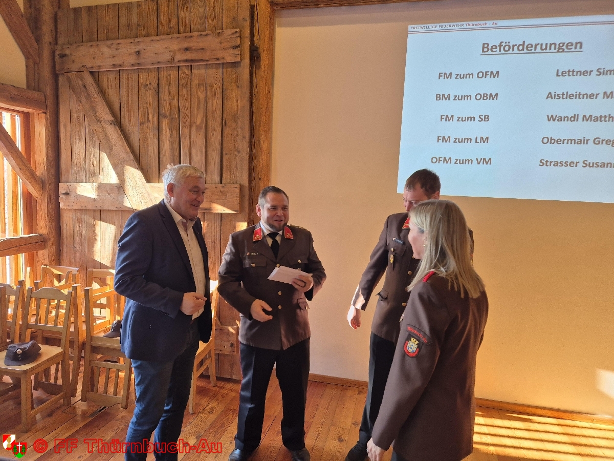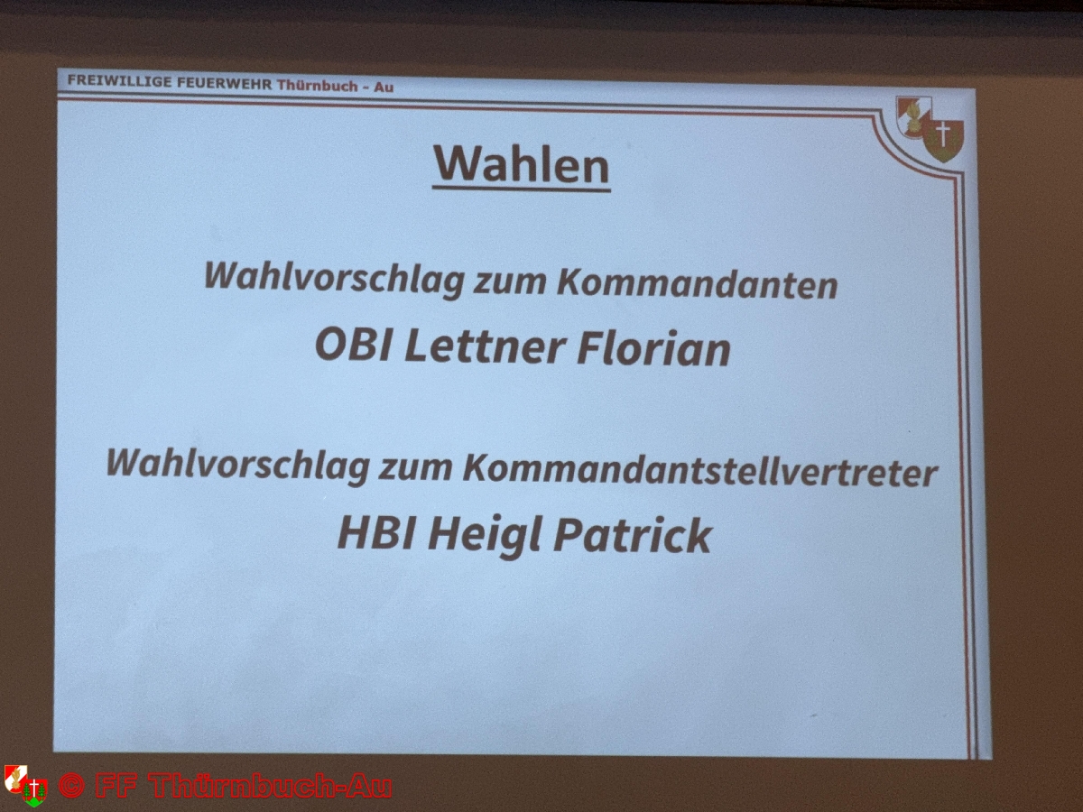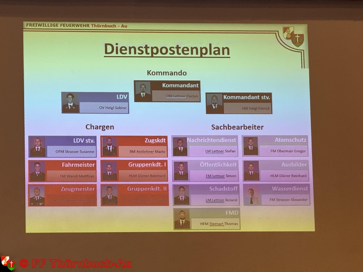 Danach ging es zur Wahl, bei denen alle anwesenden Mitglieder eine gültige Stimme abgaben und der Kommandant Lettner Florian und Kommandent stv. Heigl Patrick einstimmig wiedergewählt wurden. Weiters gab Schiefer Christian seine leitende Tätigkeit als Leiter des Verwaltungsdienstes an seine bisherige Stellvertreterin Heigl Sabine ab. Als neue Stellvertreterin wurde Strasser Susanne nominiert.