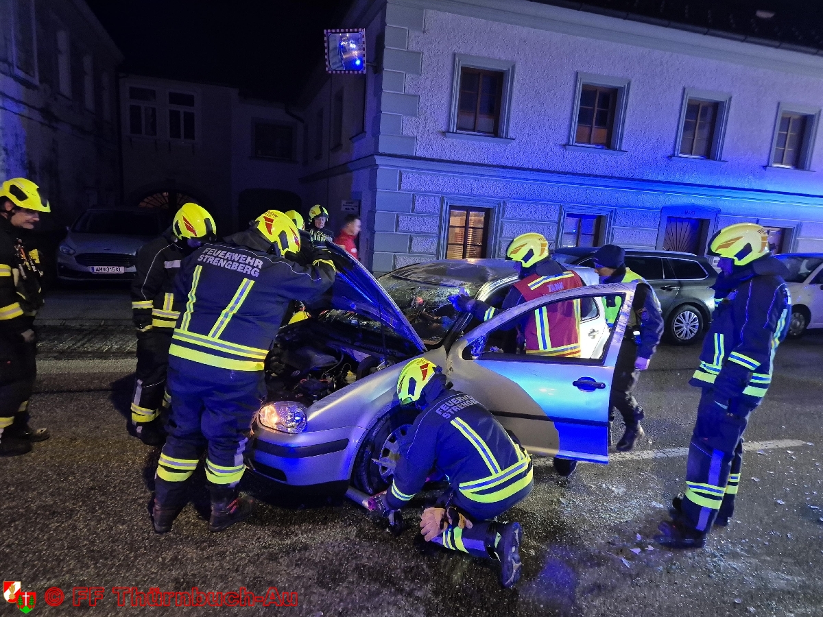 Am Sonntag Abend, dem 8. Februar 2026 wurden wir um 21:21 gemeinsam mit der Feuerwehr Strengberg und der Feuerwehr Stadt Haag zu einem Verkehrsunfall mit Menschrettung im Ortsgebiet an der B1 in Strengberg alarmiert.