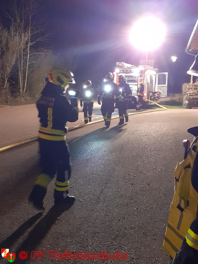 Vergangenen Samstag, am 14. März 2026 um 19:00 Uhr fand eine Zugsübung statt. Die Übungsannahme war ein Entstehungsbrand eines Hackschnitzelbunkers. Das Hauptthema war der Aufbau eines Atemschutzsammelplatzes mit Atemschutzüberwachung und einer Einsatzleitung, welche wir in der Theorie im Jänner bei einer Schulung durchgenommen haben. Der Einsatzleiter ließ einen ASSP und eine Einsatzleitung aufbauen. Eine C-Löschleitung wurde für den ATS-Trupp vorbereitet. Der ATS-Trupp erkundete das Gebäude und führte die Brandbekämpfung des Bunkers durch. Nach der Brandbekämpfung führte der ATS-Trupp noch weitere Erkundungen durch. Dabei kam es zu einem Atemschutznotfall. Eine Person des Trupps kippte um und blieb am Boden liegen. Die restlichen zwei Truppmänner führten eine Crashrettung durch und brachten die verunfallte Person aus dem Gebäude, befreiten ihn von seinem ATS-Gerät und übergaben ihm der Rettung. Nach Übungsende wurden alle Stationen nochmal durchgegangen.u.a. eingesetzte Ausrüstung